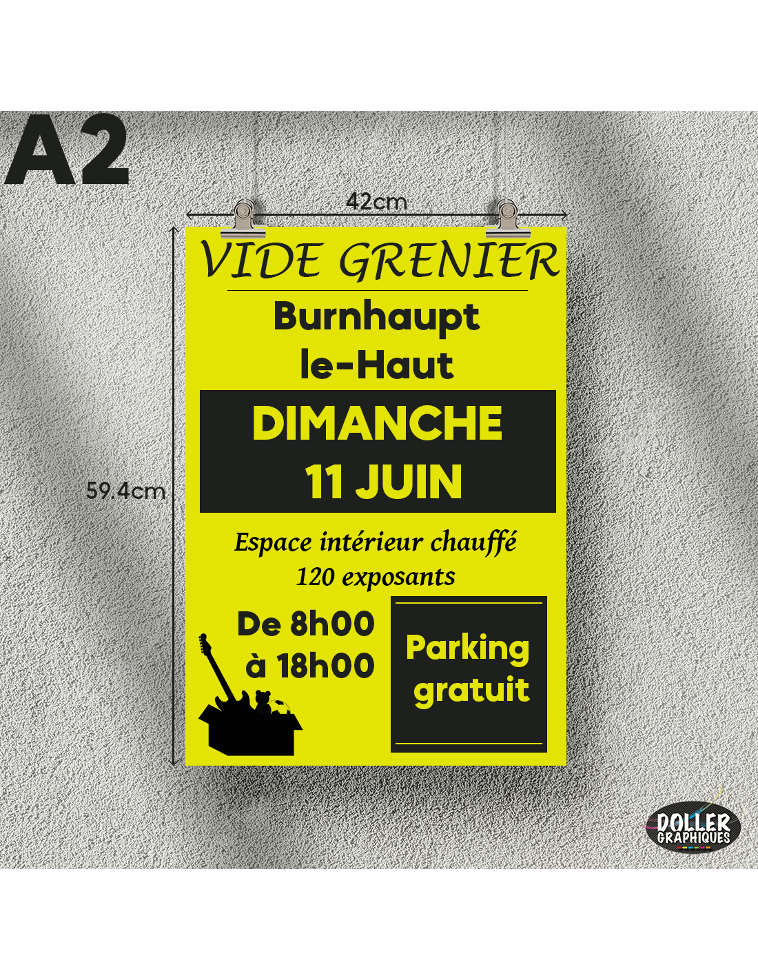 Exemple d'affiche A2 sur un mur